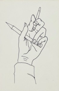 Il faut une certaine habileté pour tenir dans une même main crayon et cigarette. Trois doigts pour coincer le crayon, deux pour retenir la cigarette dont la cendre va bientôt se répandre sur le sol. Ce dessin comme un autoportrait. Dans quelques instants, peut-être, un poème va naître :