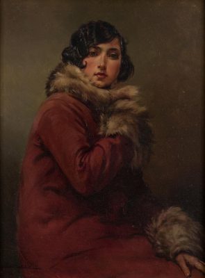Elle resserre d’une main le col en fourrure de son manteau de velours écarlate. Toute de tension érotique retenue, cette femme toise le peintre de ses yeux de braise, ourlés de longs cils. Il y a quelque chose de farouche dans son air. Quelle présence ! Le peintre l’a enveloppée d’un flamboyant manteau rouge : un rouge aussi intense que le regard de la belle espagnole.