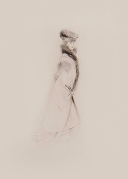 Elle avance à petits pas, chaudement enveloppée d’un manteau au col de zibeline. Cette élégante a-t-elle autant de plaisir à regarder qu’à être regardée ? Dessiné à la pointe sèche, ce portrait en pied délicat et gracieux révèle le talent de celui qui connut de son vivant un succès international. De son trait souple et juste, Helleu, roi du portrait mondain, savait capter avec tendresse les plus belles femmes de la haute société de son époque.
