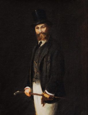 In his biographical study, Émile Zola seems to have written the following words for this portrait of Manet: “His hair and beard are light brown; his eyes are narrow and sunken, with a lively, juvenile spark; his mouth is typical—thin, moving, slightly scoffing. // Moving down from the face to his character, we see in Édouard Manet a man of exquisite kindness and politeness, with distinguished features and a friendly appearance.”