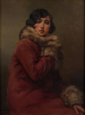 Exquisitely elegant in a fur-collared dress typical of the Roaring Twenties, Marthe Chenal strikes a pose. An elasticated sash erases her hips, tracing an elongated silhouette typical for the times, as is the cloche hat that is fixed to her flapper hair. Ordained the “most beautiful woman of Paris” by the international press, the well-known opera singer rightly appreciated her portrait.