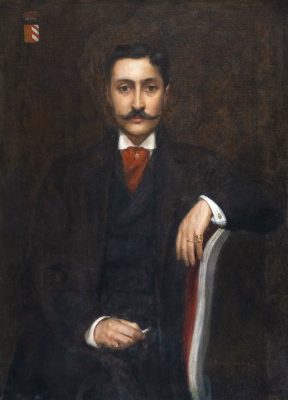 Elève de Gervex, disciple de Manet et de Degas, Jacques-Emile Blanche, peintre du plus célèbre portrait de Marcel Proust conservé au musée d’Orsay, fréquenta la haute société de son temps. Il présente ici ce portrait d’un homme de qualité au nœud papillon à la mine rosé et au sourire jovial.
